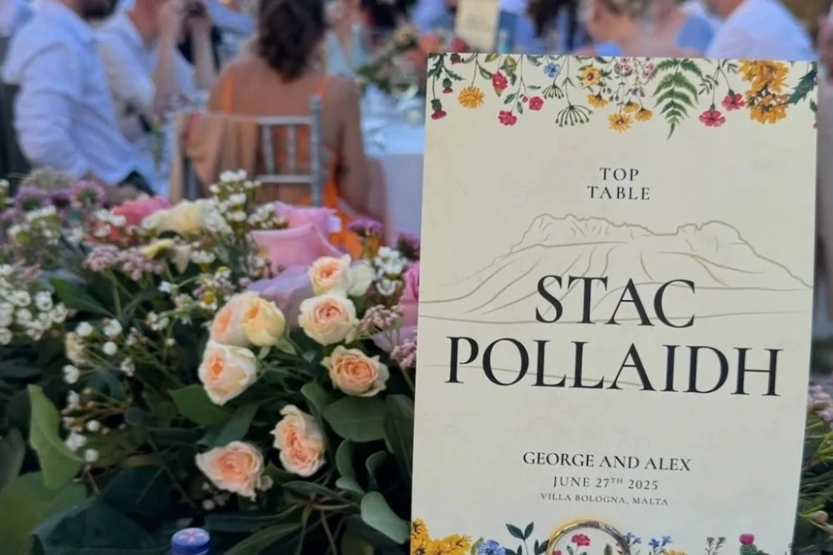 Alex & George came to me with a clear idea for their dream wedding in Malta. They wanted to include local Maltese flowers alongside ones from home, like thistles and gorse, to reflect both sides of their story.
